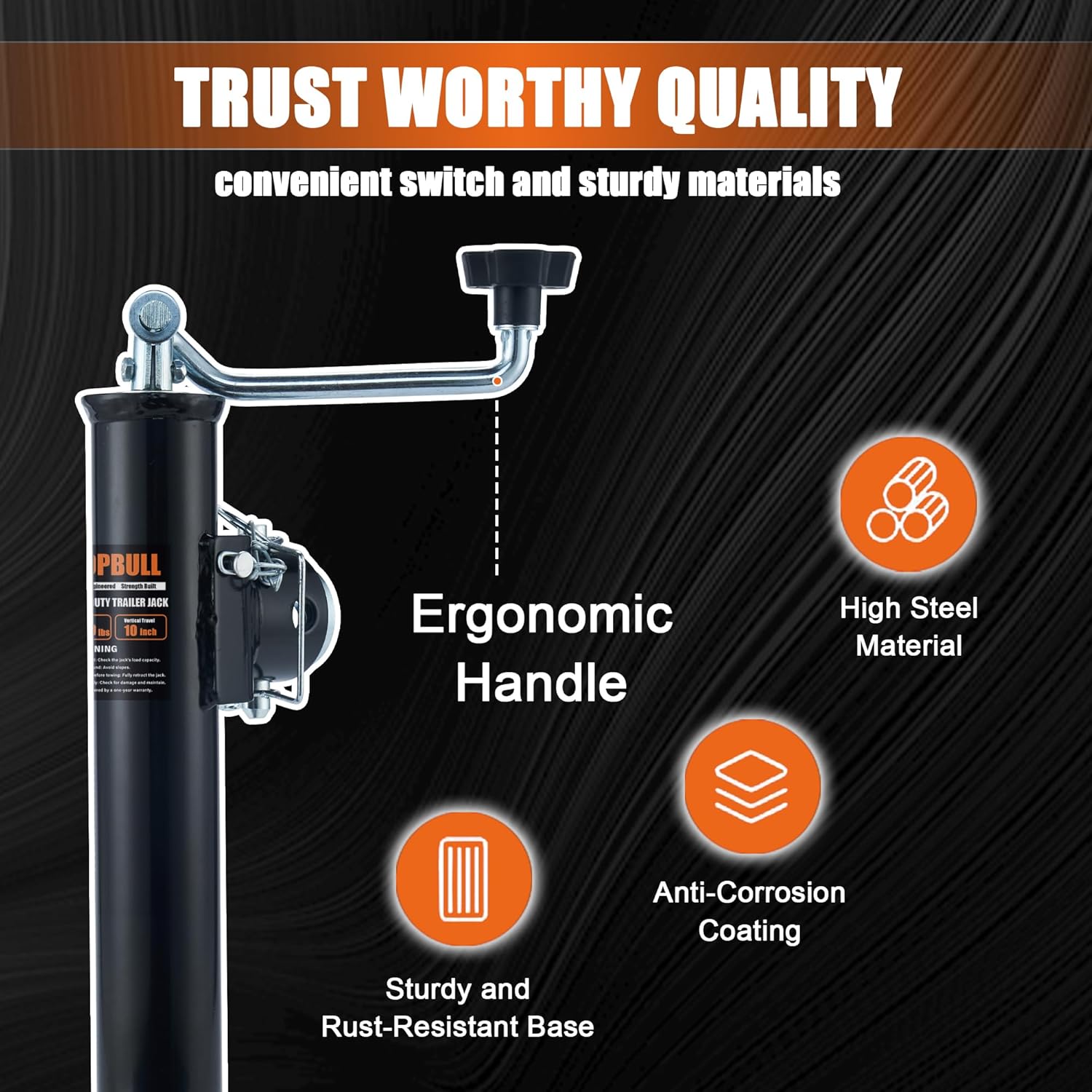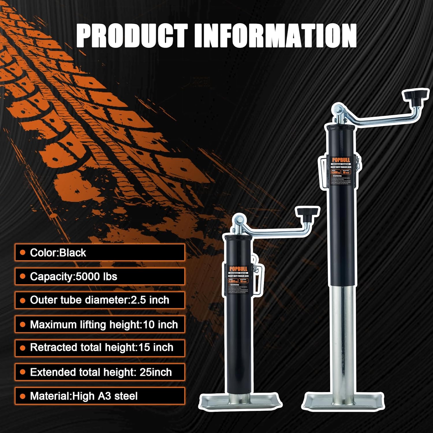 5000 lb Weld-on Pipe Swivel Trailer Jack, 10" Lift Trailer Jack with Footplate, Suitable for RVs, Boats, Multi-Purpose Trailers, and Camping Trailers