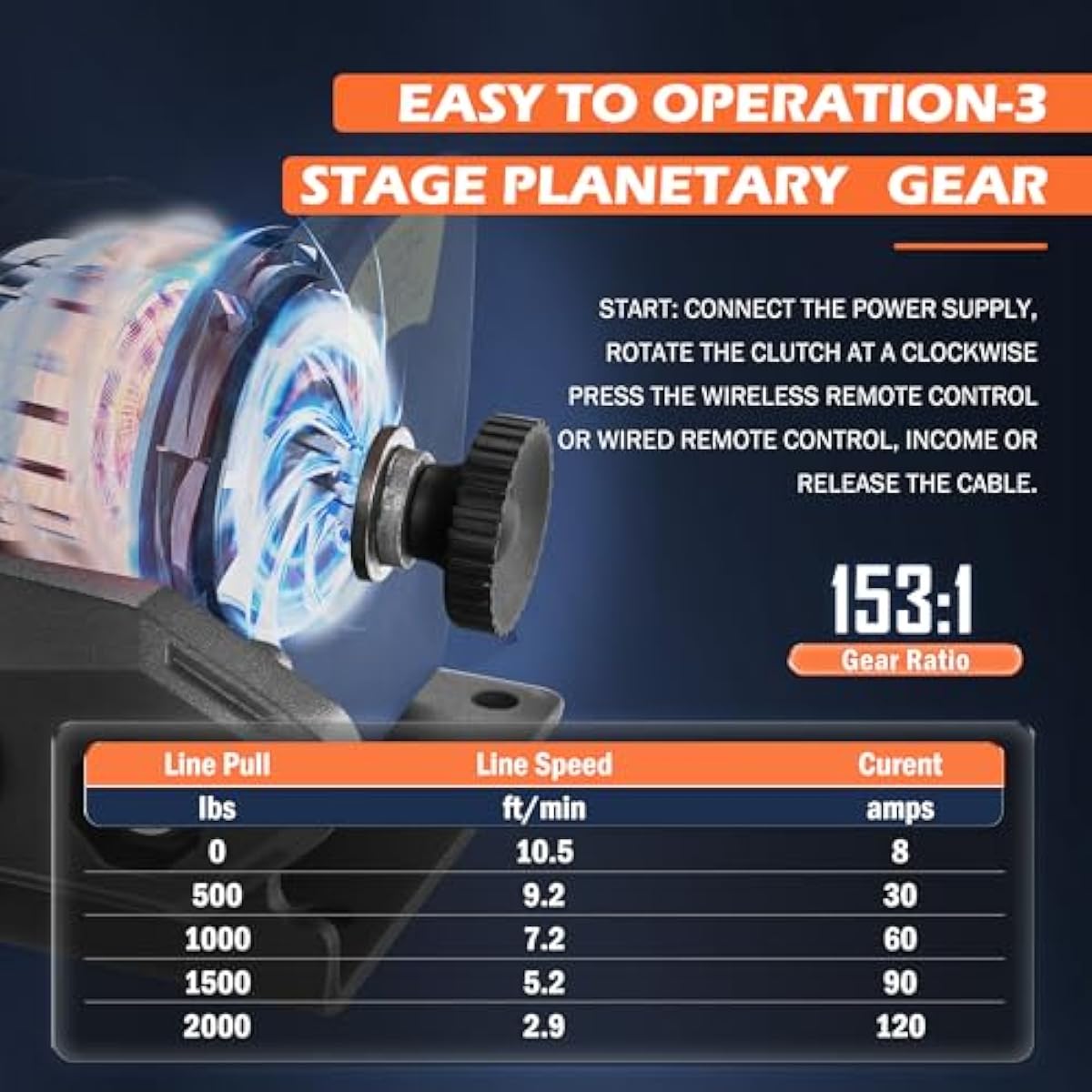 AC-DK 12V 2000lb|2500lb|3500lb|4500lb|5500lb. ATV/UTV Electric Winch, Off-Road Synthetic Rope Winch for Trailer Boat RV Towing Winches, ATV/UTV Winch with Big Yellow Wired Remote and Winch Mounting Plate