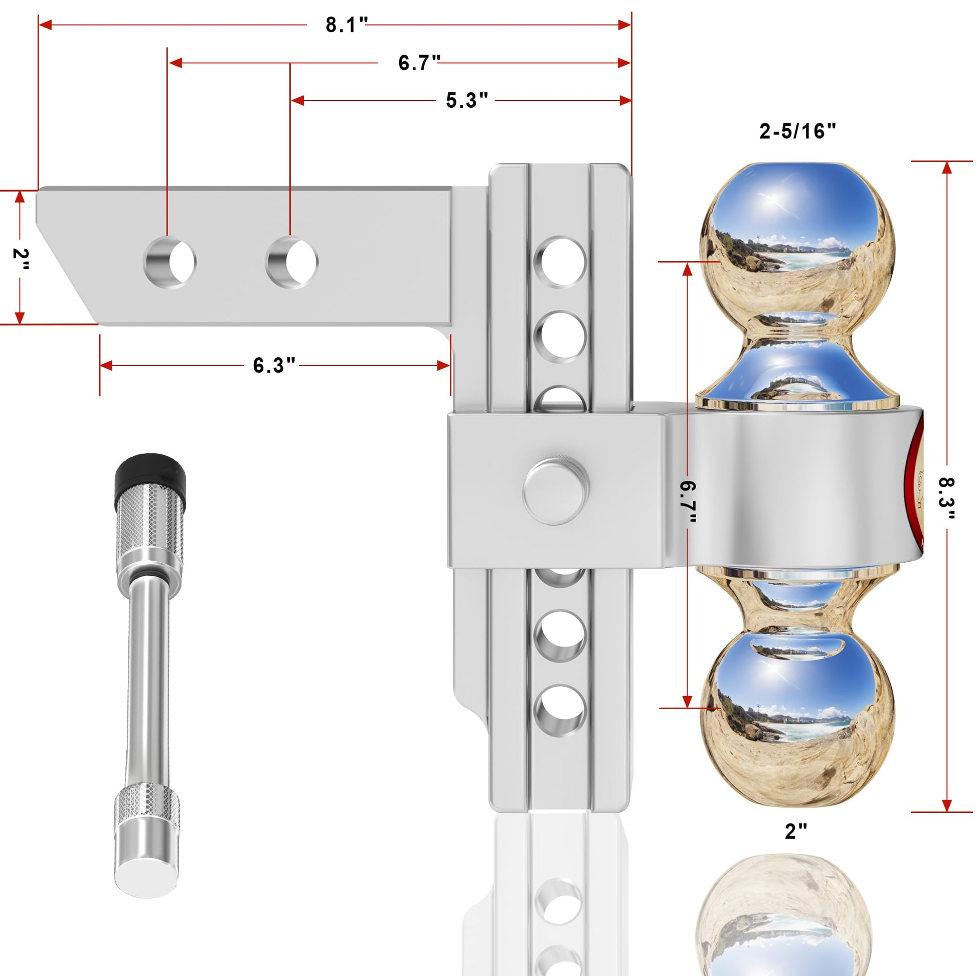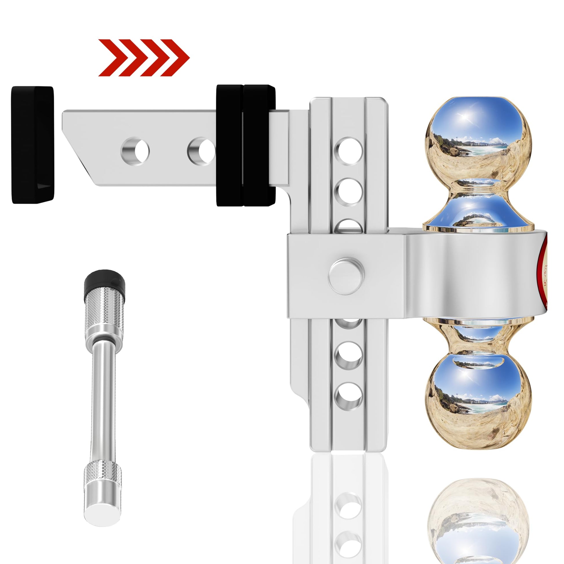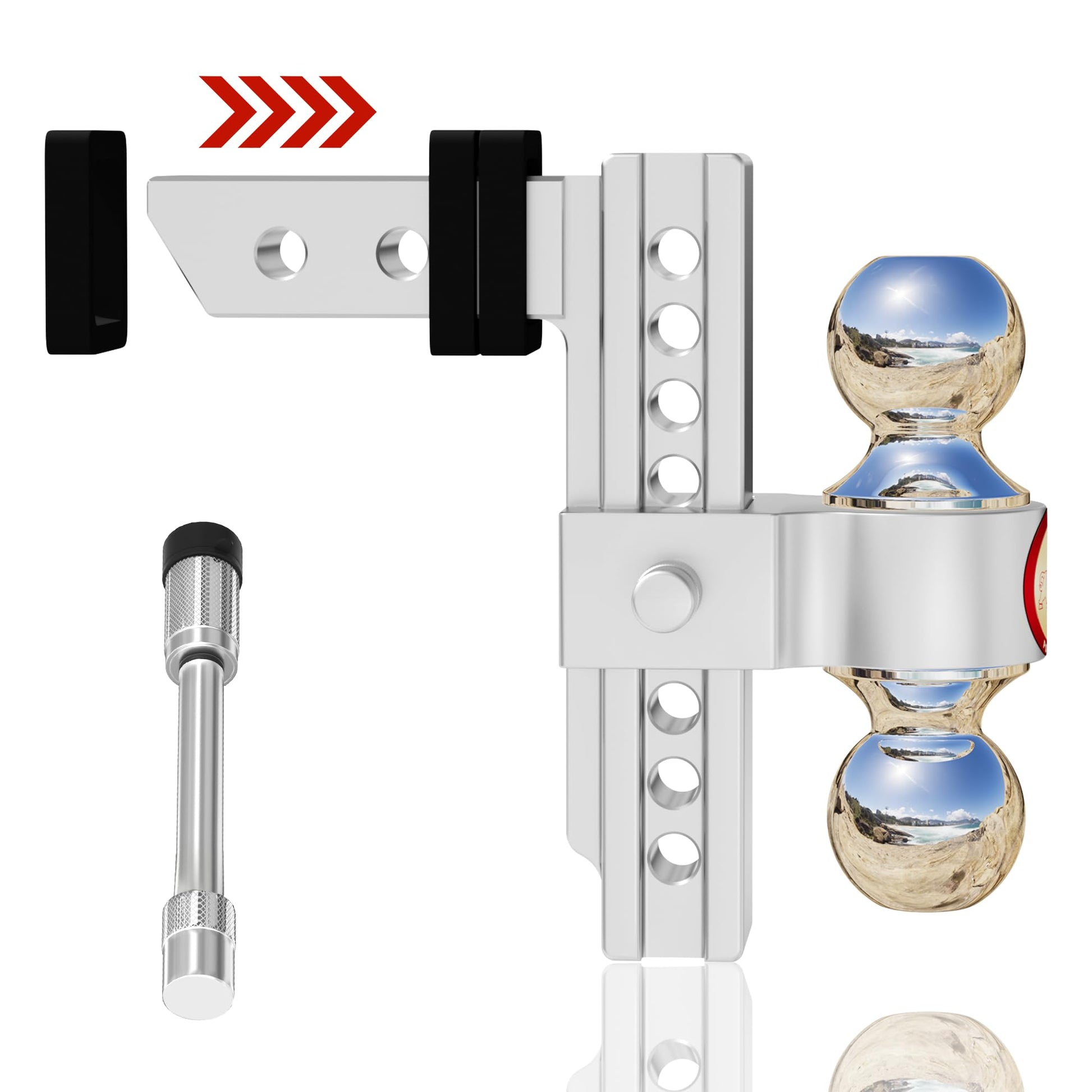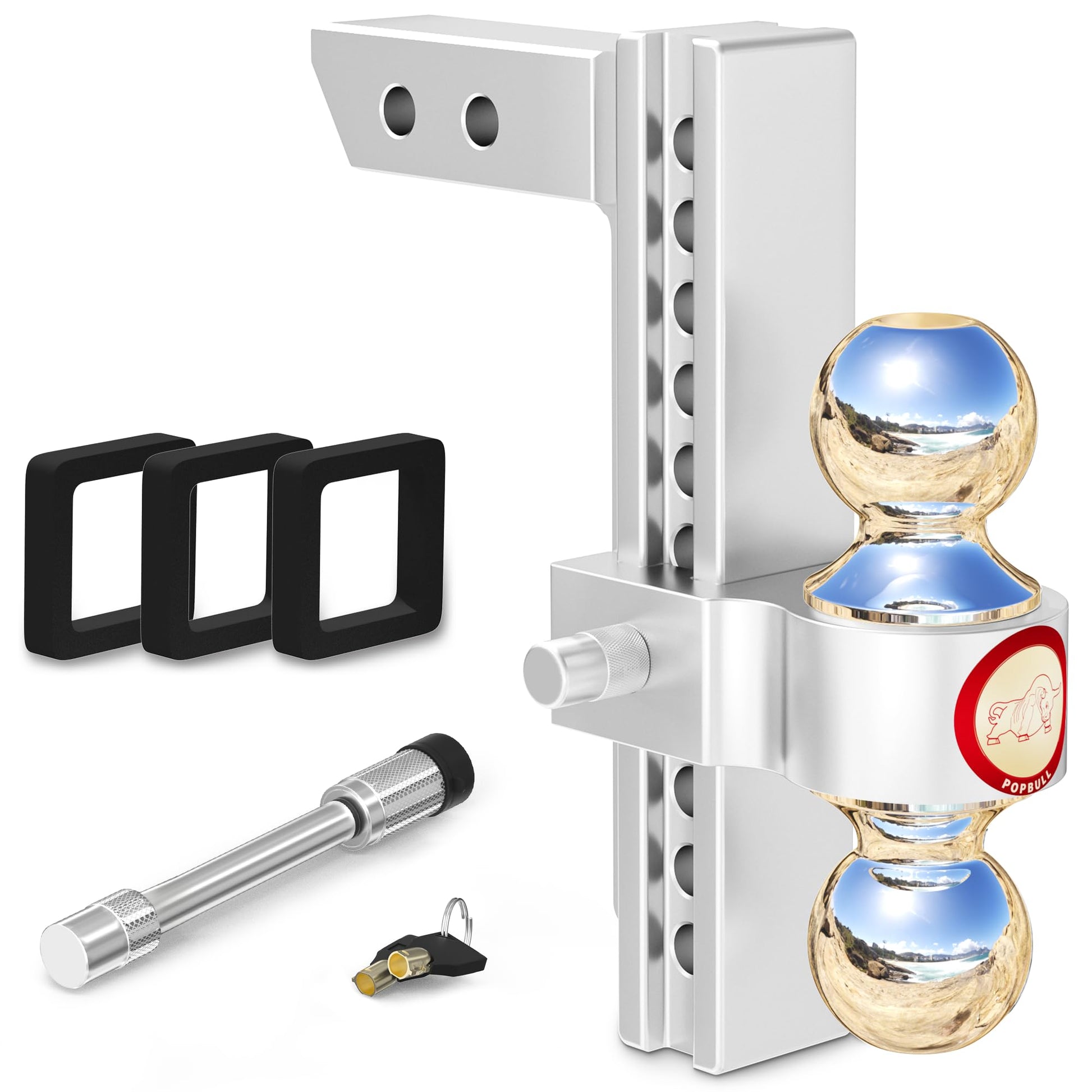 Adjustable Trailer Hitch, Fits 2-Inch Receiver, Heavy Duty Aluminum Drop Hitch,12,500 LBS GTW-Tow Hitch for Truck Jeep Trailer with Double Stainless Steel Locks, Not Loose