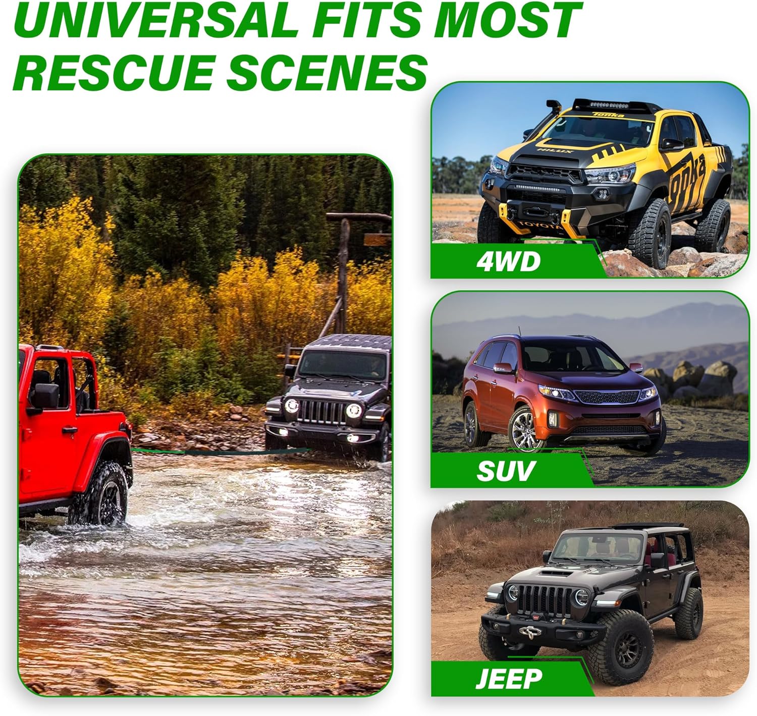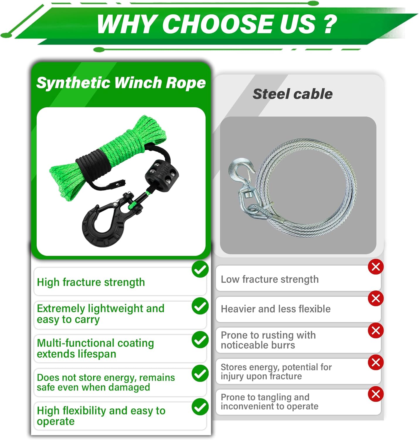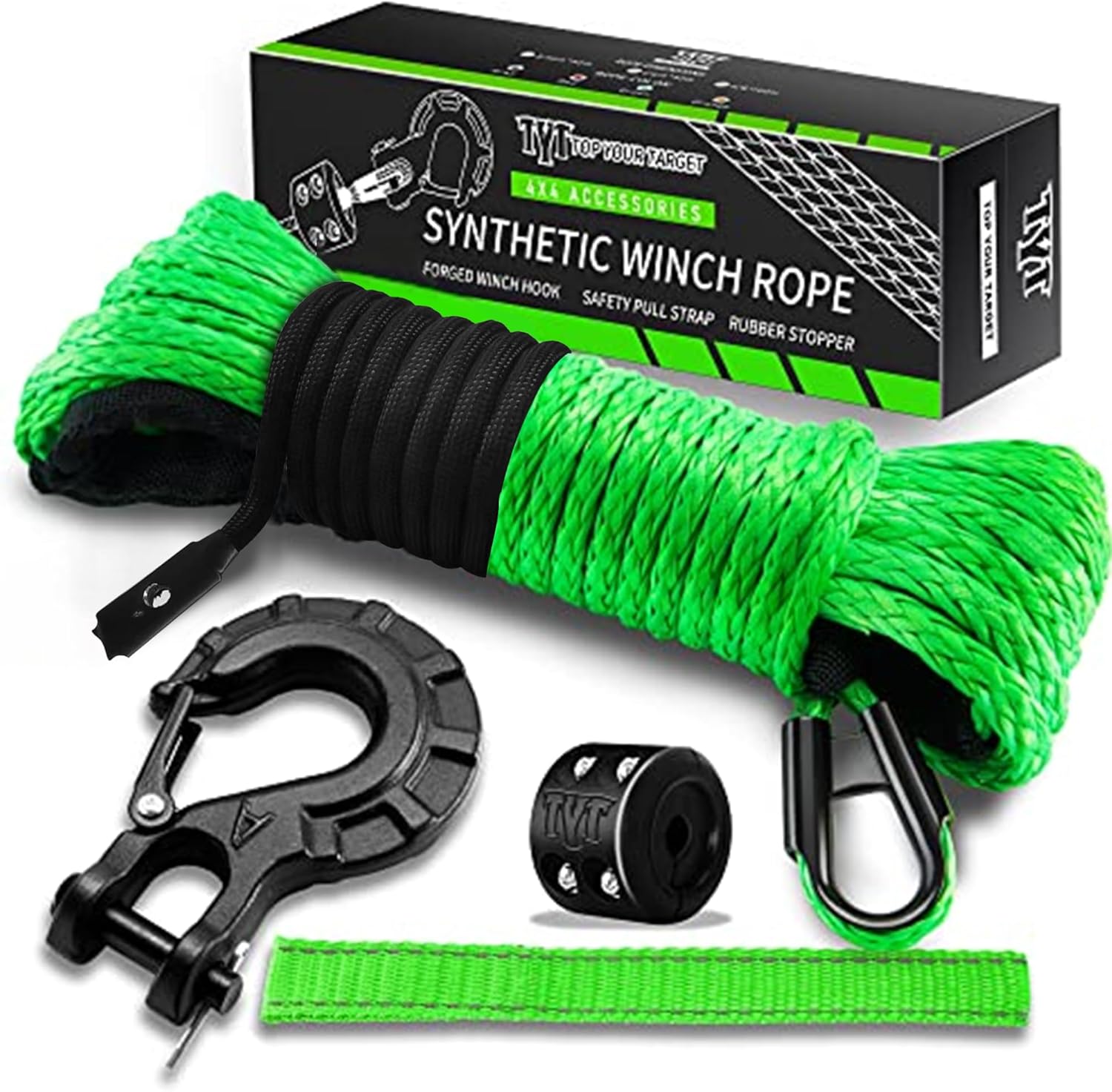 TYT Off-Road Winch Rope Kit - 3/16''x50', 8500 Lbs Green Synthetic Cable with Protective Sheath, Heavy-Duty Hook, Safety Pull Strap & Rubber Stopper Ideal for 4WD ATV UTV Vehicles, (JPS31650G)