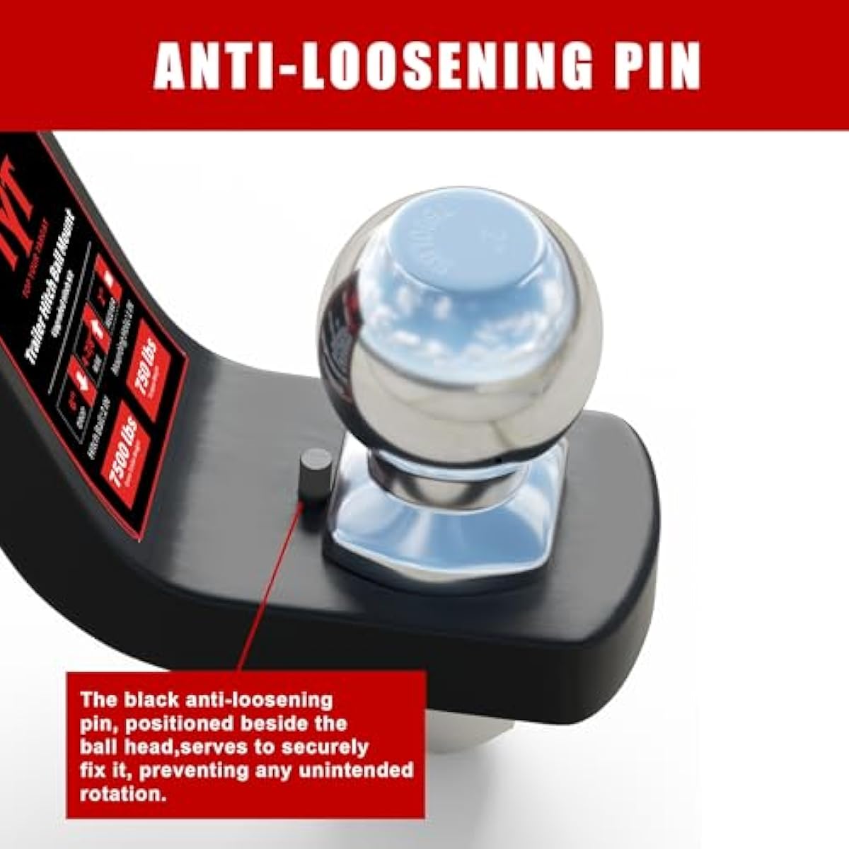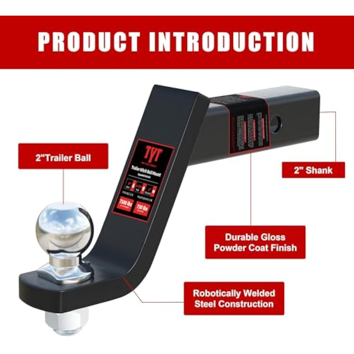 TYT Trailer Hitch Ball Mount Kit, 4-Inch Drop, Fits 2-Inch Receiver, 2-Inch Trailer Ball with 5/8" Hitch Pin Clip, Rated 7,500 lbs GTW / 750 lbs TW